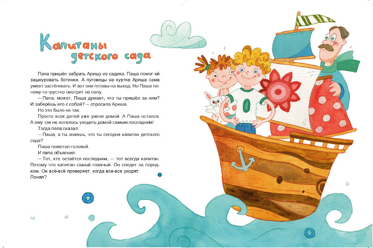 «Капитаны детского сада» — это самая ранняя из моих книг. Когда-то я стала придумывать истории для девочки Ариши — дочки моих друзей. Постепенно они превратились в сборник рассказов о жизни маленькой детсадовской группы. В группе всего шесть ребятишек и одна воспитательница, — зато игр сполна на всех! Тем, кто только собирается в садик, книжка расскажет, что это такое. А с теми, кто уже ходит в детский сад, можно обсудить, что и как там происходит. Маленький секрет от воспитателей: книжные имена легко заменить на имена детей, которые слушают книгу.